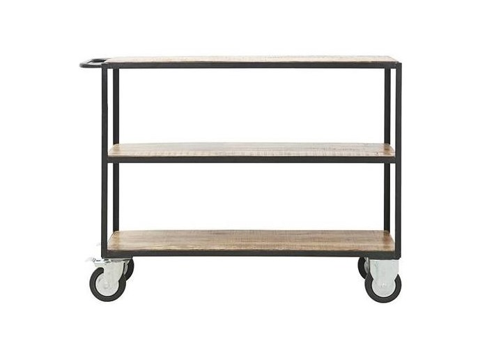 Hermoso carro auxiliar con ruedas. Estructura de metal con 3 tablones de madera .
