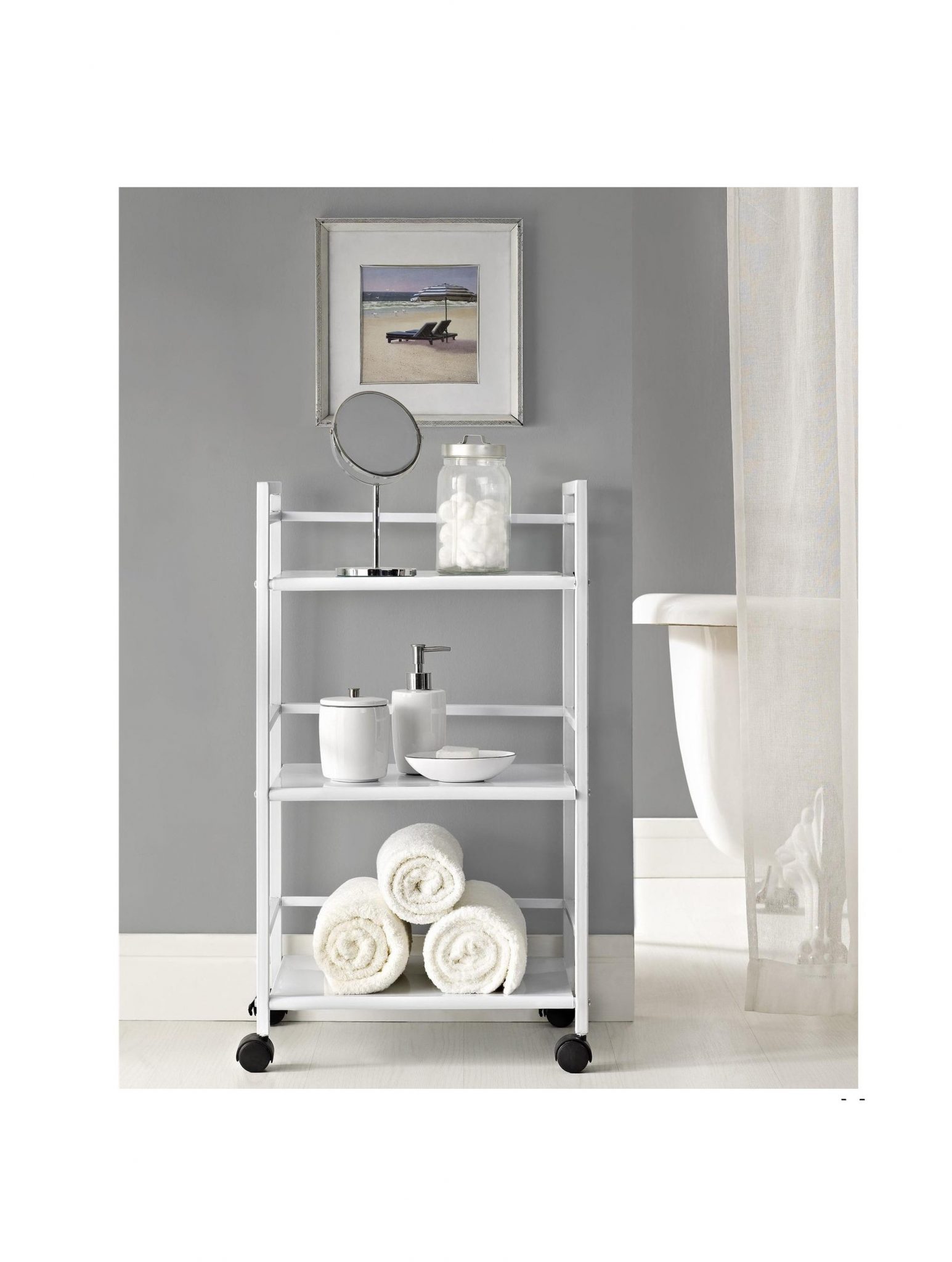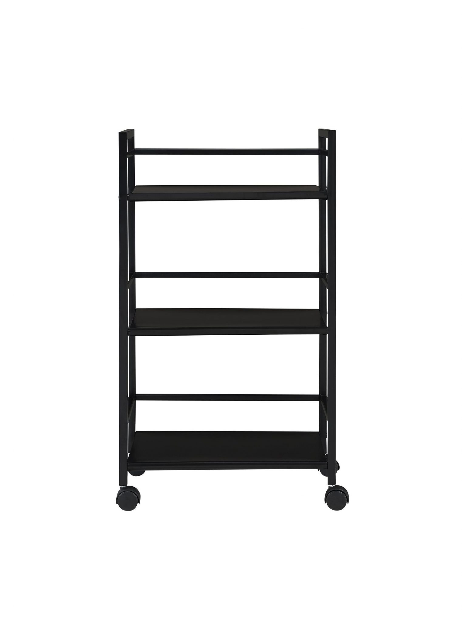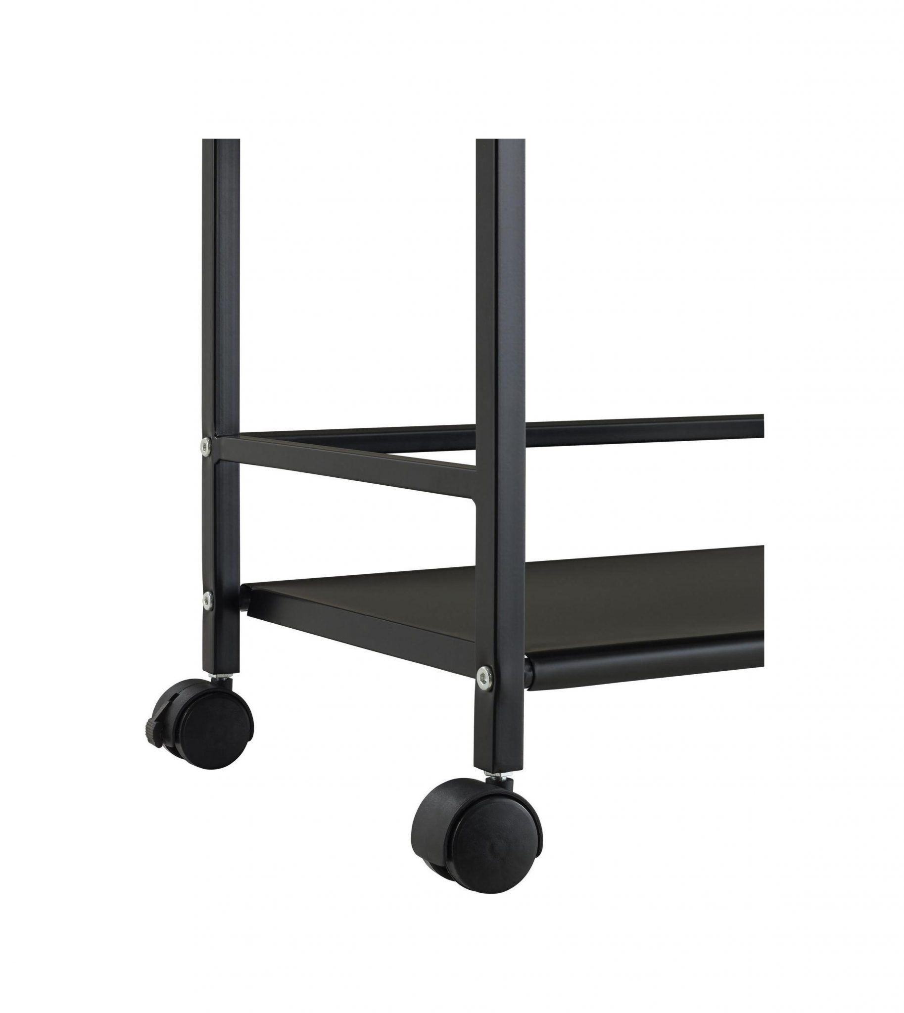 Tres estantes grandes con barras envolventes en 3 lados y ruedas con bloqueo mantendrán tus objetos seguros en su lugar.