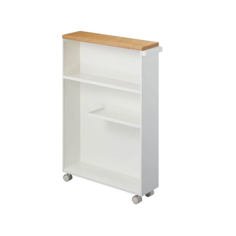 FUNCIONAL: Mantenga los estantes delgados de tres niveles almacenados en todo momento para aprovechar al máximo el estante. La unidad es bastante alta y estrecha, por lo que está diseñada para encajar idealmente contra o entre cosas. Un asa facilita el deslizamiento de las esquinas pequeñas.