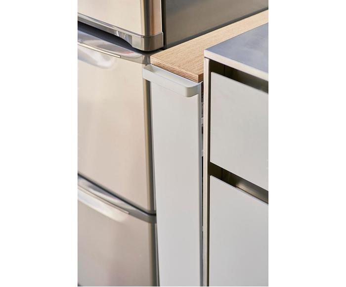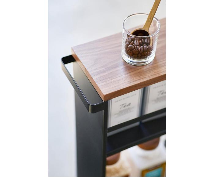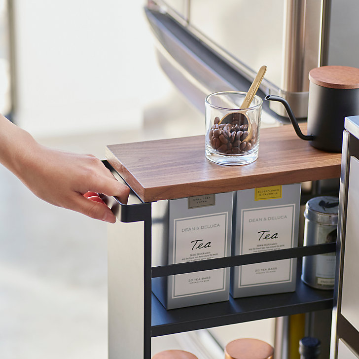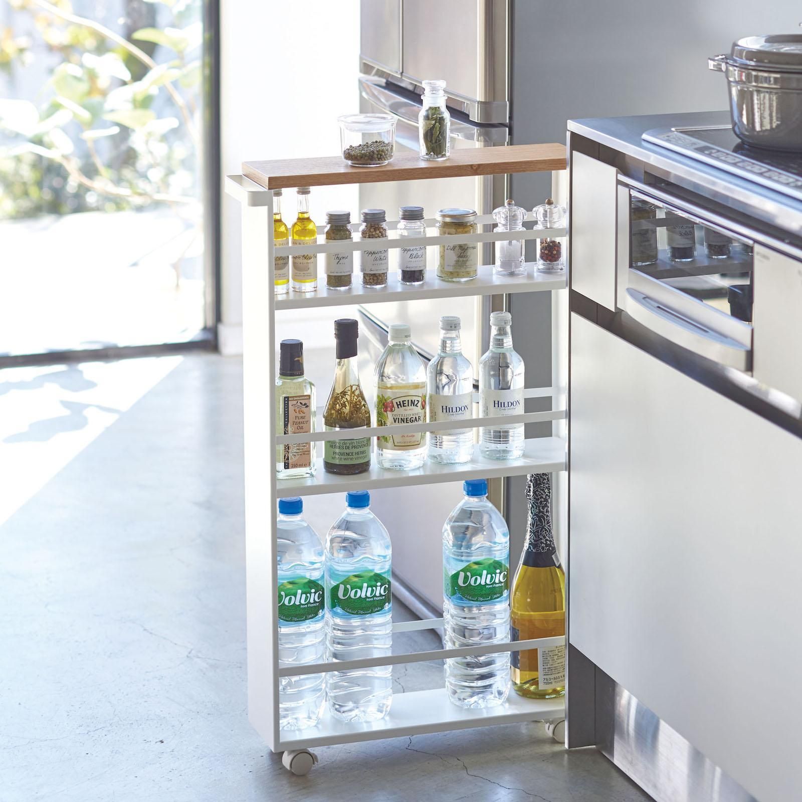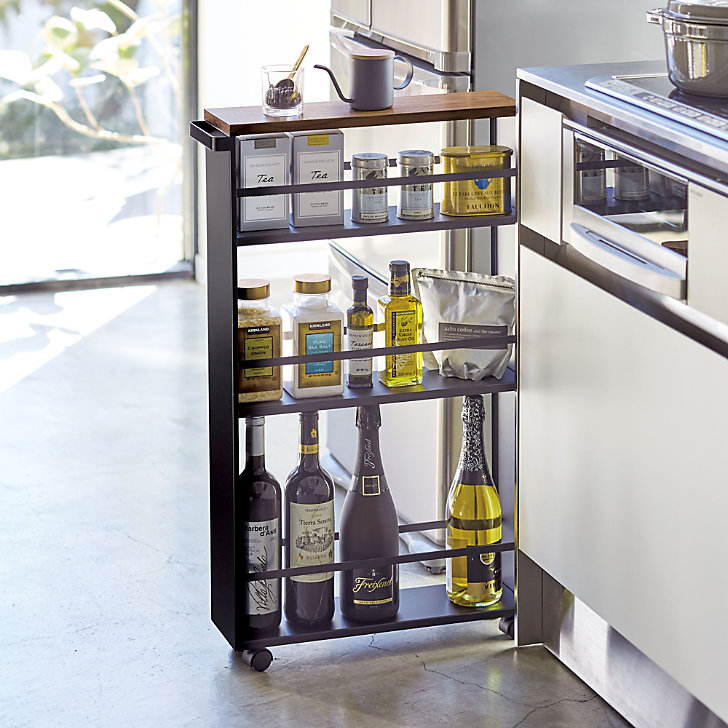 FUNCIONAL: Mantenga los estantes delgados de tres niveles almacenados en todo momento para aprovechar al máximo el estante. La unidad es bastante alta y estrecha, por lo que está diseñada para encajar idealmente contra o entre cosas. Un asa facilita el deslizamiento de las esquinas pequeñas.
