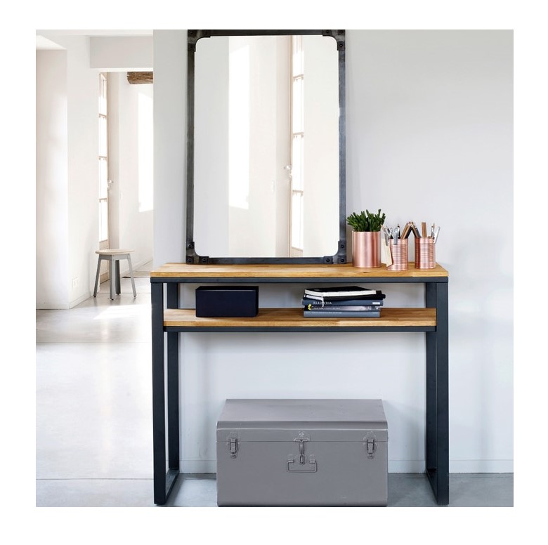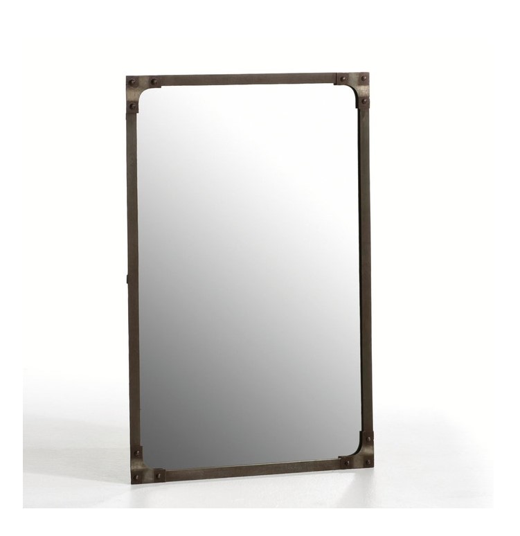 Este espejo, de clara tendencia industrial, posee un marco metálico y un excelente acabado remachado en sus esquinas.