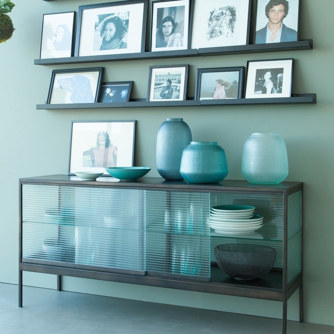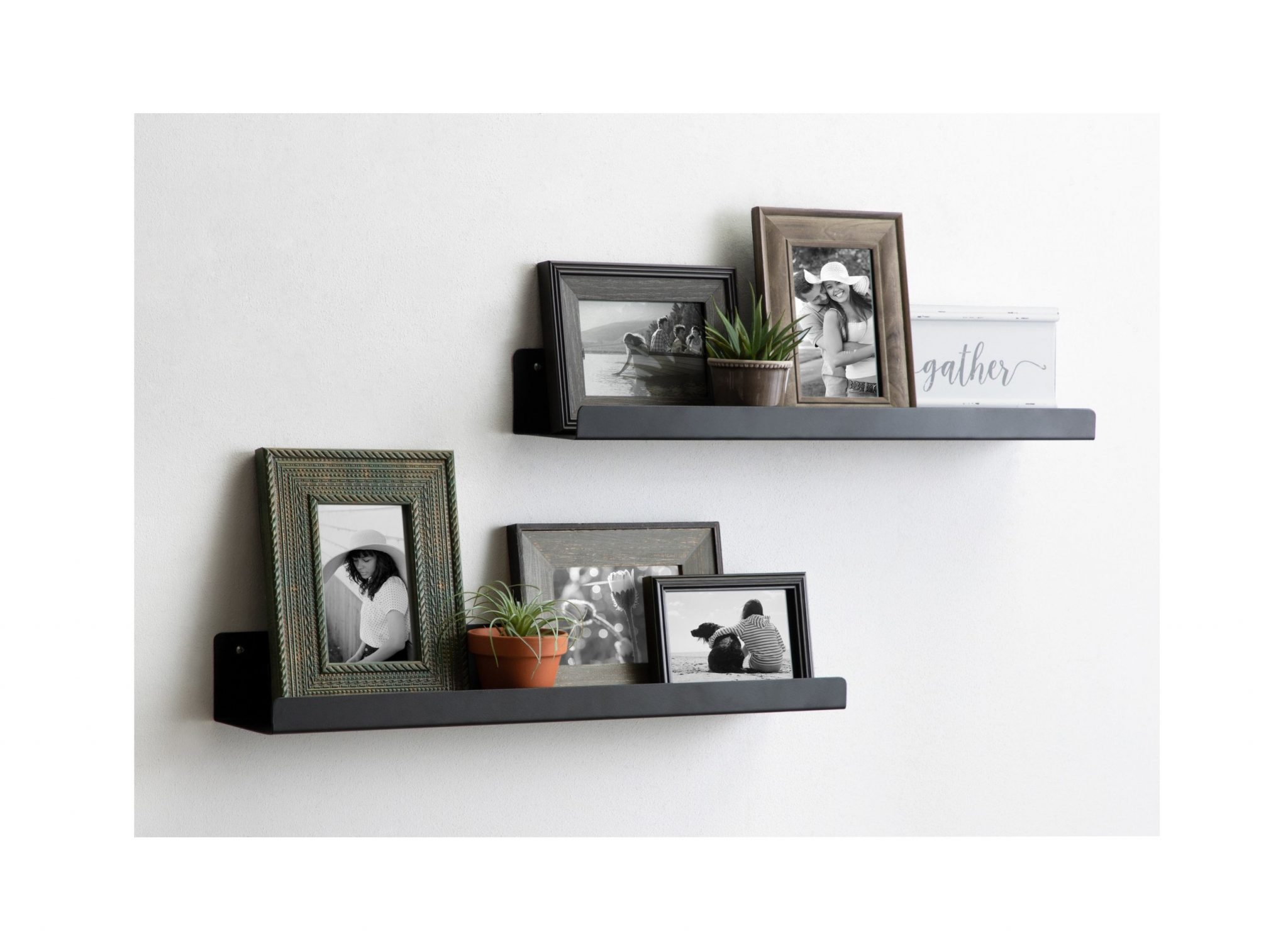 Una solución fácil para la visualización y el almacenamiento. Cada estante tiene una composición metálica resistente con un labio protector para evitar caídas accidentales. El acabado con recubrimiento en polvo añade resistencia contra el desgaste natural. Monte sus fotos, recuerdos y novedades favoritos en una pieza de exhibición minimalista y arquitectónica.