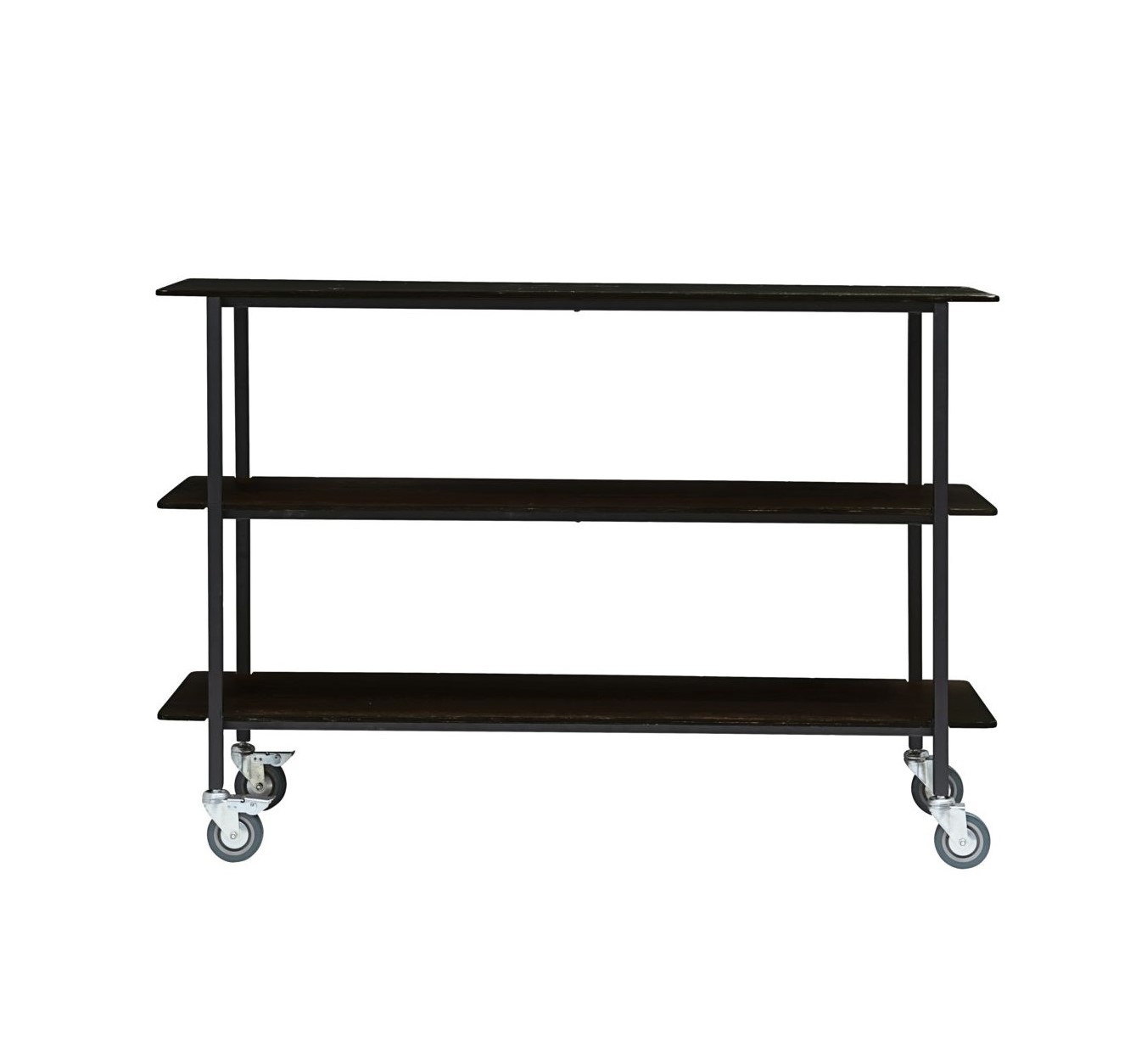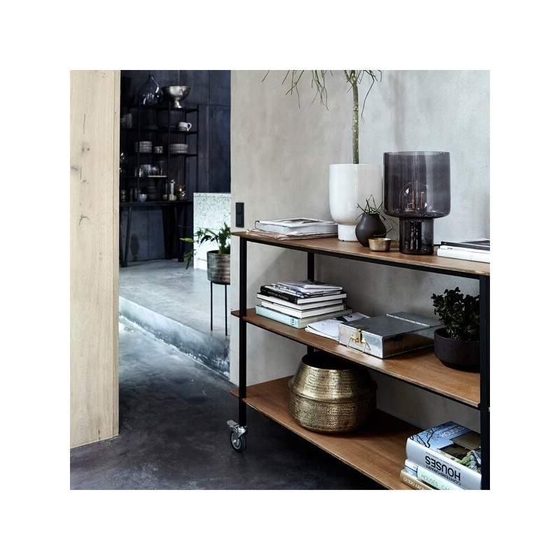 Esta estantería de estilo industrial dispone de 4 ruedas que hacen más fácil su desplazamiento.