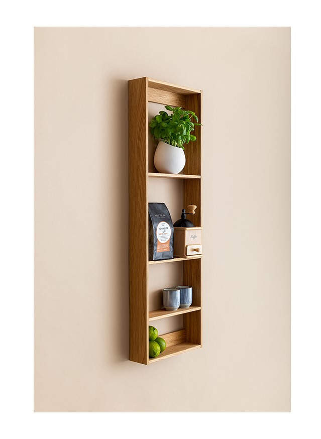 Con un diseño delgado, es el objeto perfecto tanto para almacenamiento como para exhibición. Fácil de montar y no ocupa demasiado espacio ya que la profundidad de los estantes es de sólo 8,5 cm. Esto permite espacio suficiente para organizar sus vinos preferidos, perfumes, plantas o cualquier otro de sus objetos favoritos.