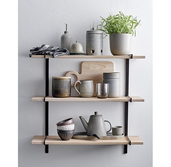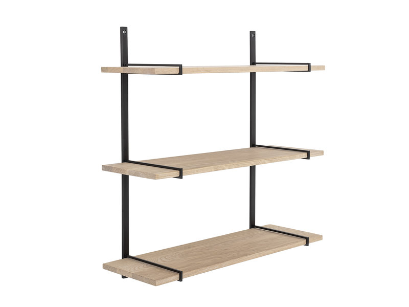 Estante de pared en madera y metal compuesto por 3 estantes.