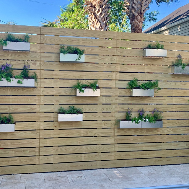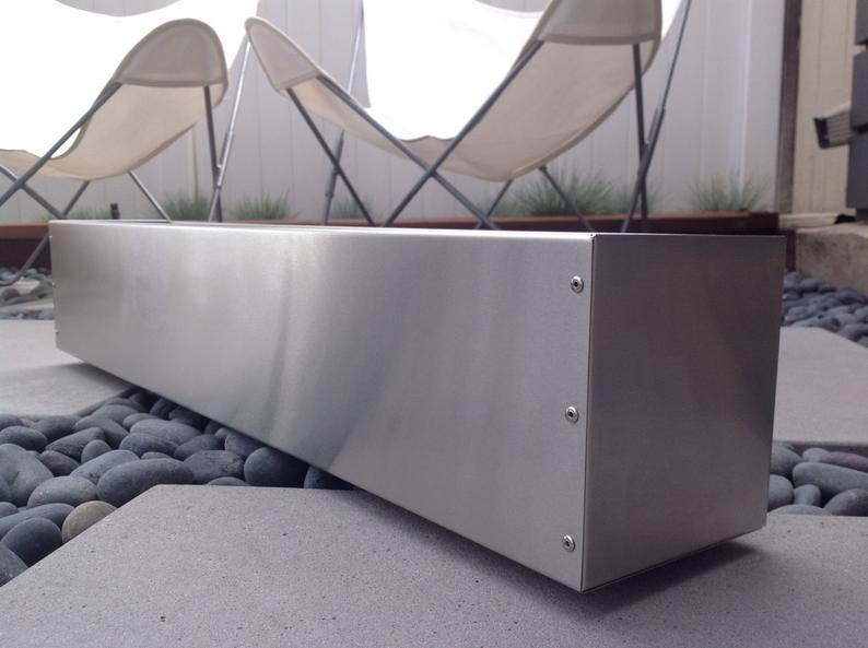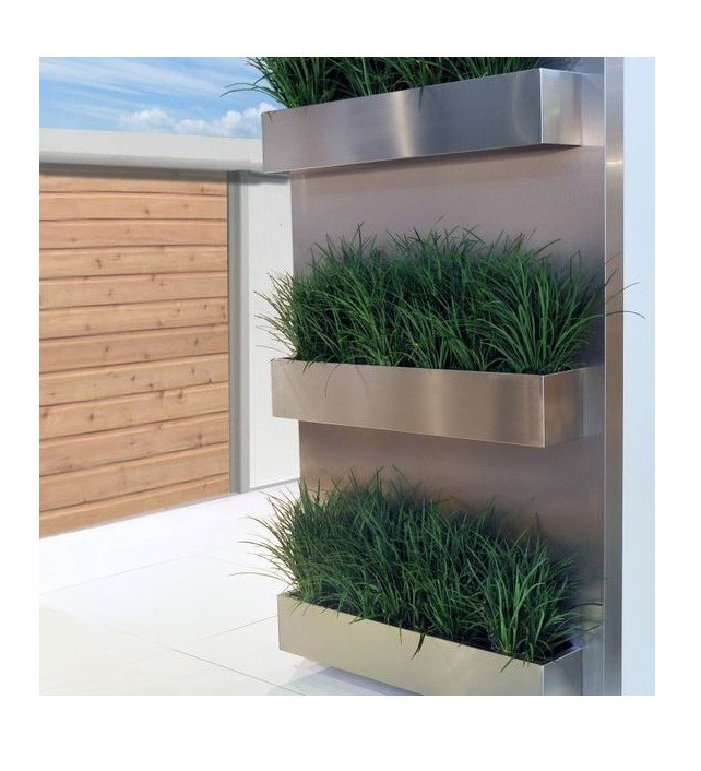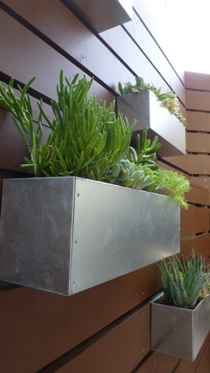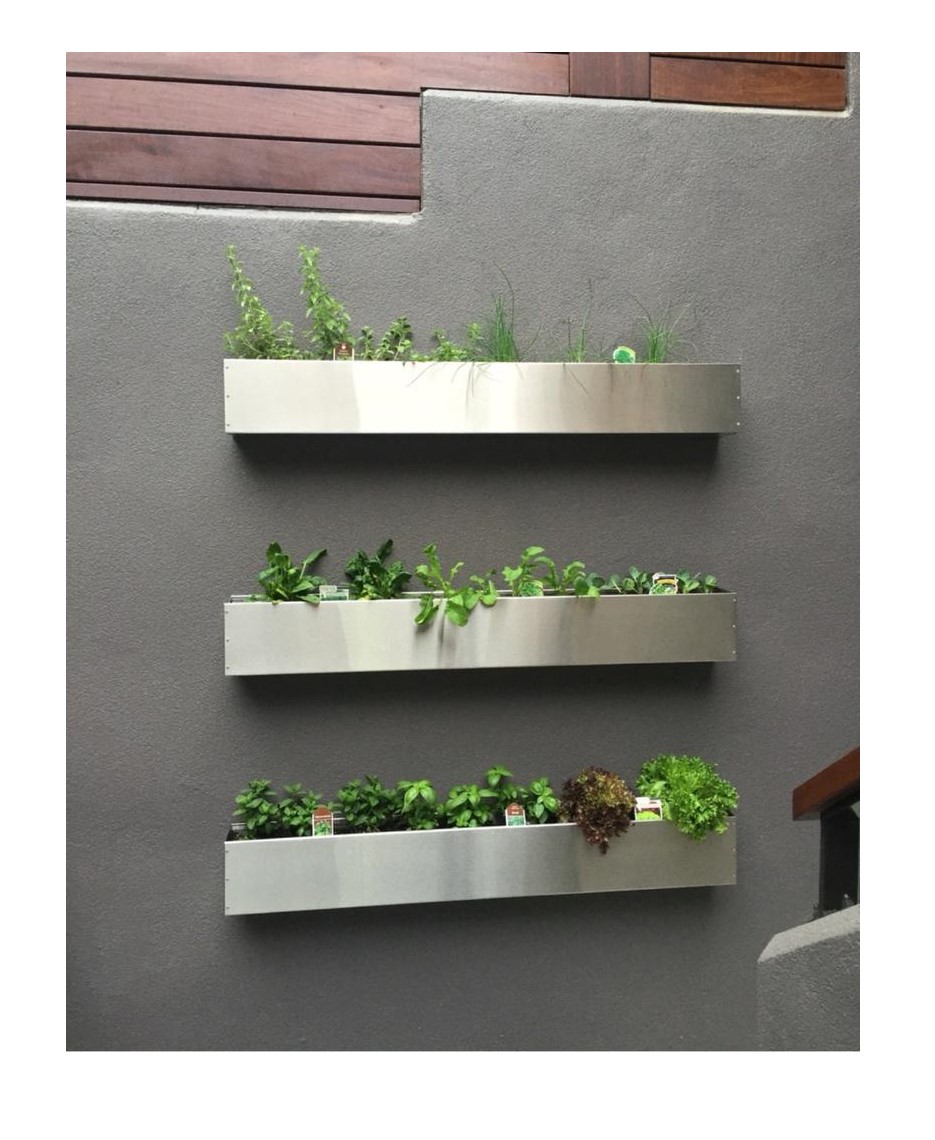 Realizada en acero inoxidable, esta jardinera se puede colgar en un hormigón, estuco, superficie de madera o cualquier otra superficie en la que se pueden perforar tornillos. Una vez en su lugar, no hay signos visibles de hardware colgante.