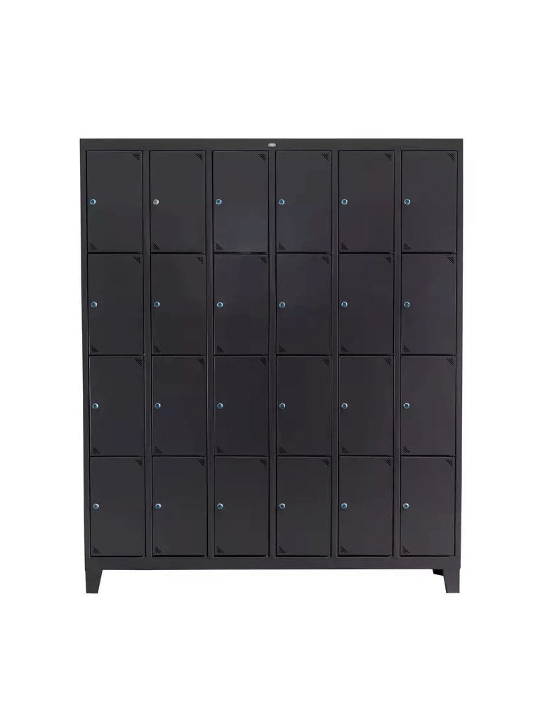 Armario metálico diseñado para guardar objetos personales. El gabinete consta 24 puertas con falleba giratoria cromada con pasa candado.