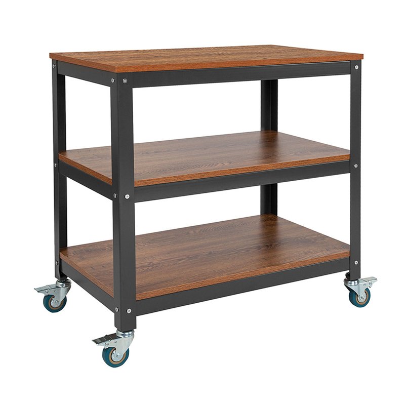 Este carro de almacenamiento de estilo industrial puede encontrar muchos usos en su hogar. Tanto en el living para exhibir su decoración, en la cocina para almacenar insumos, en el garaje o como un ayudante perfecto para su taller. Dos ruedas con bloqueo le permiten usar el carro de manera segura una vez que haya configurado su ubicación.